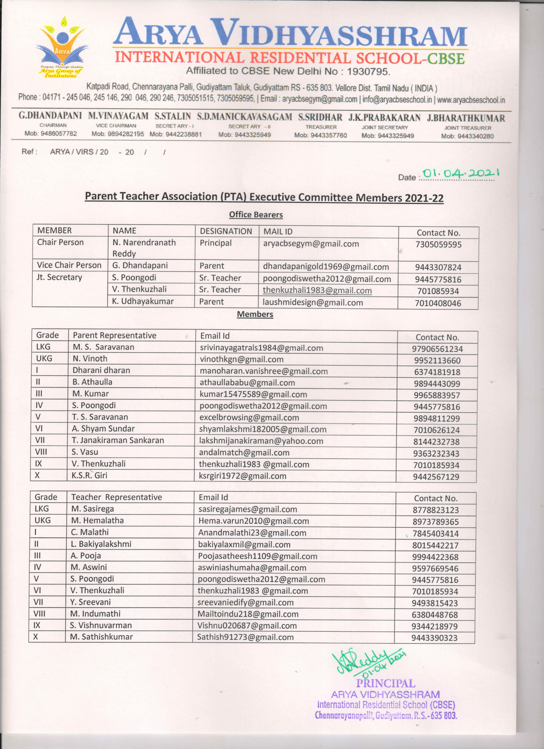 Recongnition 2020 Stability Trust Deed Academic Calendar 2021-22 CBSE Fee Structure 2021-22 CEO Certificate Copy of Affiliation letter-2021 Fire certificate -2021-22 Form-D Sanitary Certificate SMC PTA Members School Land Deatils